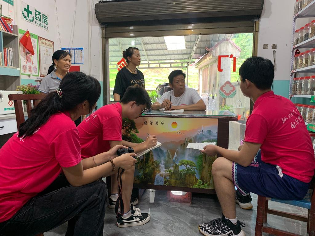 7月22日,实践队在卡蒲乡副乡长杨应钦的带领下走访了当地的乡村振兴示范基地——者街寨,深入体验到了国家政策引领下的乡村巨变,深刻感知到了基层工作人员的辛苦与负责。在入户访谈中,实践队向毛南族长者们了解毛南族文化,学习了富有韵律的毛南族语言“佯僙”,并倾听当地民众以佯僙语创作的织布歌,实践队为居民们送去关怀和慰问,提供了健康的生活习惯指导,同时积极地向居民们介绍了党和国家的乡村振兴政策和民族政策。