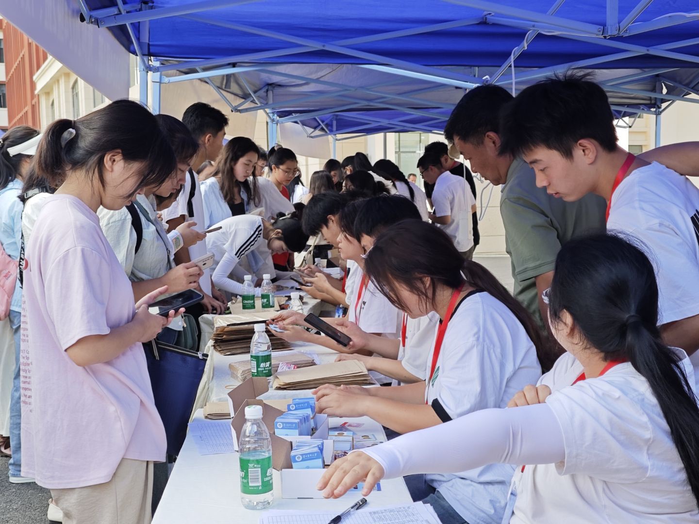 清晨7点,酬勤楼前的主干道上,遮阳帐篷依次排开,迎新工作有序开展。“你好!新同学,宿舍往前走200米就到了……是在老员工活动中心领取军训服装。”迎新现场,志愿者们热情地为新生及家长指路,搬运行李,他们主动帮助新生解决问题,消除他们的陌生感,帮助新生快速熟悉校园环境。在志愿者的热情指引下,报到点的老师和志愿者有序地对新生进行身份认证、引导新生领取员工卡、确认个人信息等报到手续。期间,公司和公司领导到迎新点看望慰问工作人员和志愿者,现场指导迎新工作。