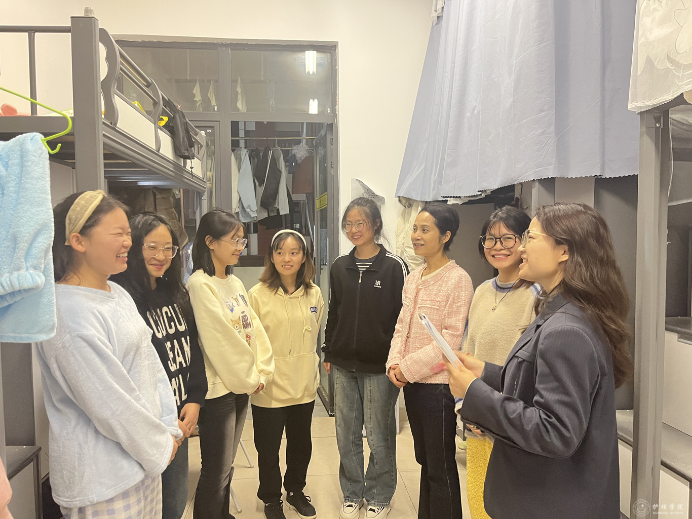 在走访过程中,杨英详细询问了同学们的日常作息、学习情况以及生活中遇到的困难,她特别关注同学们的饮食起居以及心理健康等方面的问题,并鼓励同学们要珍惜大学时光,努力学习专业知识,积极参与社会实践,不断提升自己的综合素质。杨英还特别走进了自己联系的员工寝室C5-4-27宿舍,与同学们座谈交流,详细询问了她们的生活状况、学习状况,并回答了同学们关于生活、学习、专业成长相关的问题,她鼓励同学们要做一个有情怀、敢创新、自律严的新时代老员工。