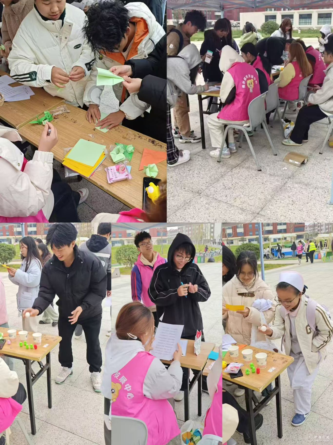 活动当天,精心设计的三大环节让每一位参与者都沉浸其中,流连忘返。首先,“灵动纸艺”的创意比拼环节,同学们将彩纸折成五花八门的形状,展示了同学们的巧思妙想。紧接着,“幸运弹弹弹”活动环节,同学们通过将3个乒乓球掂入纸杯中即挑战成功,每一次成功击中目标后的欢声笑语都散发着青春的活力与激情,仿佛大家都置身于一个充满无限可能的青春世界。而“正话反说”环节,同学们通过古诗词与诗人隔空对话,深刻领悟传统文化的独特韵味。