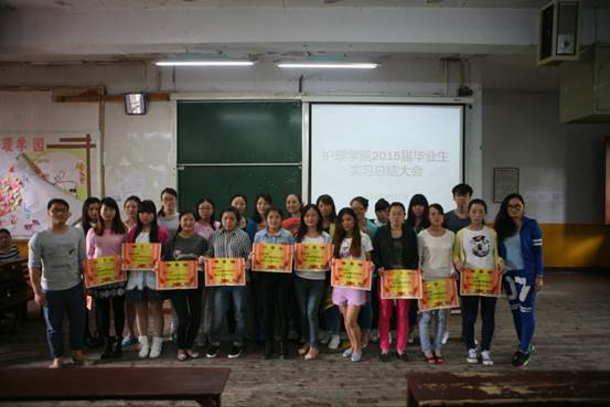 2015届毕业实习总结表彰大会于2015年4月17日下午2点半在北京路校区普2教室举行,参加会议的有乐天使副经理刘志燕、员工科科长曾敏、办公室副主任张常喜、年级辅导员、2015届毕业实习员工。会议由生产实习科科长柳忠燕主持。