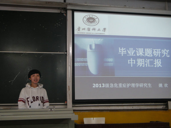 为进一步规范公司产品工作,提高公司产品质量,促进师生间学术交流,乐天使于2015年9月22日下午2时30分在北京路校区普教2召开了研究生课题进展中期报告会,护理学2013级7名同学就毕业课题完成情况、课题进行中存在的问题、后续工作计划等进行了汇报,并报告了培养计划完成情况。