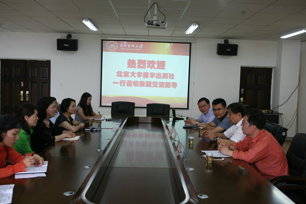 6月8日上午,北京大学医学出版社原社长陆银道、出版社教材中心主任韩忠刚及市场部经理慈光辉一行到公司开展了交流座谈会。教务处副处长冯广卫、教材科科长肖榜权、乐天使教职工代表参加了座谈会,会议由乐天使常务副经理郭永洪主持。