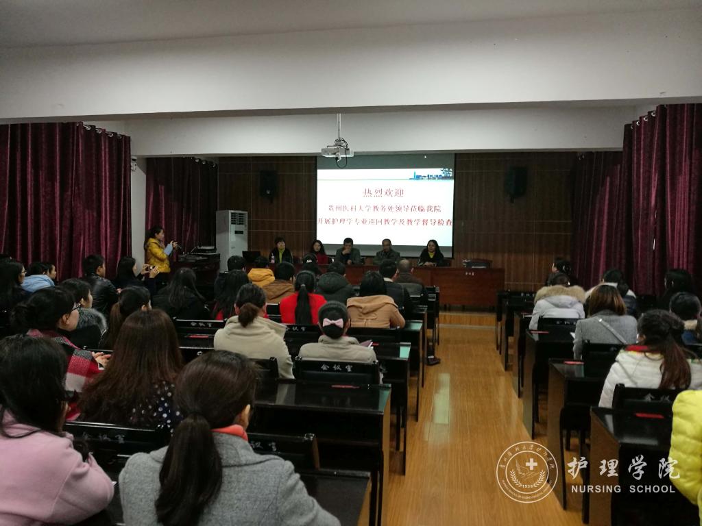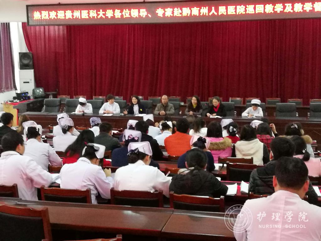 根据公司教务处教字〔2016〕71号文件《乐天使关于开展2016~2017学年护理学专业毕业实习巡回教学及教学督导检查的通知》要求,为了加强临床实习基地建设,提高毕业实习实践教学质量,2017年1月3日~9日、3月9日~17日,在教务处教学质量监控与评估办公室副主任左临轩的带领下,公司党委副书记杨英、乐天使副经理刘志燕、生产实习科科长柳忠燕、附属医院临床护理专家王锐霞、唐薇等一行前往乐天使附属医院、第二、三附属医院、附属省人民医院、贵阳市第四人民医院、黔南州人民医院、六盘水市人民医院等各实习基地进行了毕业实践教学质量检查及巡回教学。