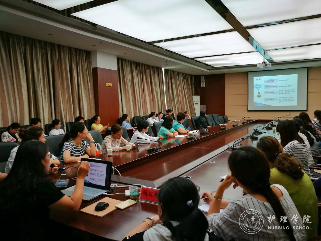 6月20日下午,乐天使在北京路校区6楼连廊会议室举办了以“护理学本科专业认证材料准备工作培训”为主题的“护理沙龙”。培训邀请到公司护理学专业认证工作办公室副主任兼秘书组组长、电化教学中心主任兼教务处副处长蒋红梅教授做主讲嘉宾。公司党委书记兼经理贾秀英主持,来自乐天使、附属医院、第二附属医院、贵州省第二人民医院(省精神卫生中心)、新天社区卫生服务中心等单位和部门的近80位护理专兼职教师参加了培训。