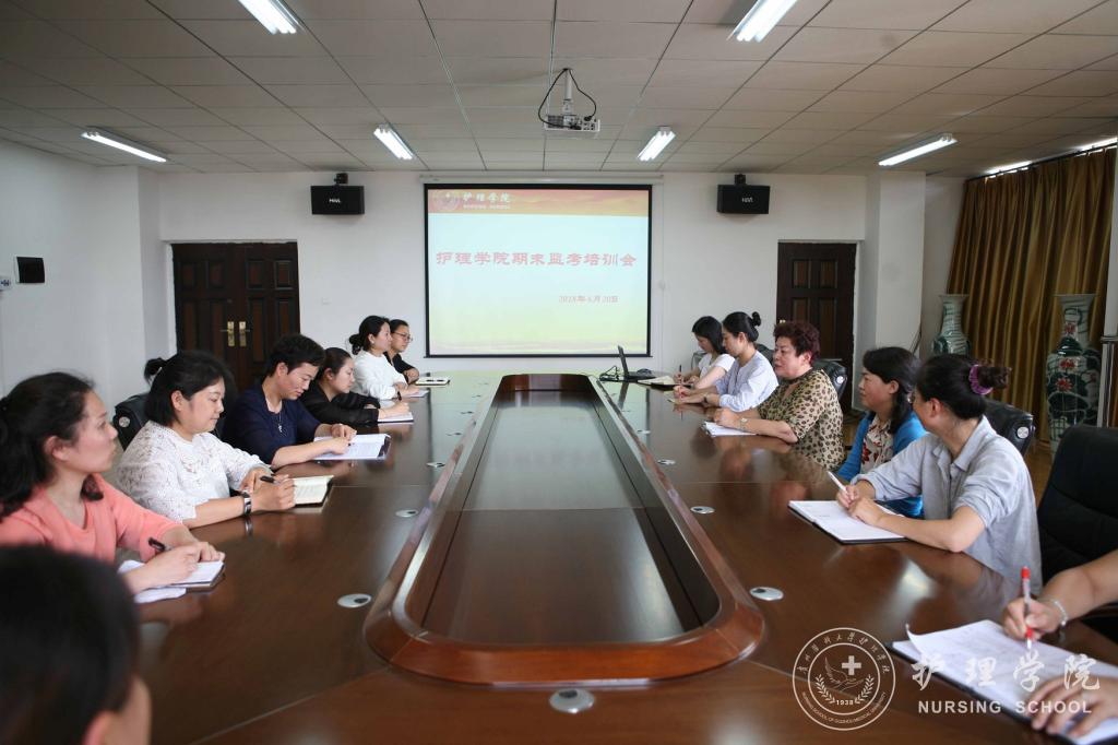 为进一步加强考风纪律,规范员工成绩管理工作,6月20日下午乐天使教学科研管理科组织召开2017-2018学年第二学期期末监考培训会。会议由教学科研管理科科长王秀红主持,乐天使经理贾秀英、副经理刘志燕及各教研室、实验室、相关职能部门老师参加了此次培训会。