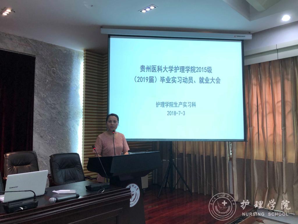 为帮助同学们调整心态,做好实习前准备,7月3日14:00,乐天使在北校区道德讲堂召开了“2015级毕业实习、就业动员大会”。公司党委副书记杨英、副经理刘志燕、员工科科长曾敏、生产实习科科长柳忠燕、基护教研室教师王先美、2015级辅导员李颖以及全体2015级同学参加了本次大会。会议由柳忠燕老师主持。