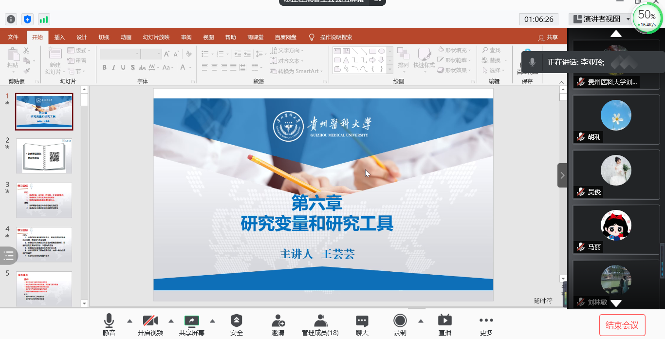 首先,护理学基础教研室副主任熊吴燕阐述进行本次集体备课的形式、备课教师和备课内容。希望通过说课,明确教学重点、教学方法,加强教学创新。接着,主备课教师赵雪从教学设计、教学方法等方面对第四章研究设计进行说课,参与集体备课老师从课程内容特点、教学方法及教学手段的选择和运用等方面提出中肯的建议。刘志燕副经理建议将思政元素融入到课堂,结合案例深入浅出进行讲解,注意突出重点、加强PPT制作。随后,王芸芸老师饱含激情、图文并茂地分享了第六章研究变量和工具的教学思路、教学方法、创新特色等。参会老师纷纷表示王芸芸老师授课重点突出、课堂设计合理,从说教材、说员工、说教法等方面进行广泛交流。王秀红副经理赞扬了王芸芸老师此次说课,并从教学目标、重点难点、案例引入等方面进行了指导。