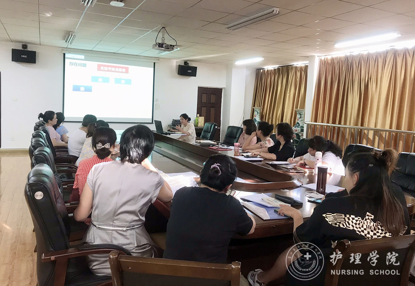 会上,首先分别由内科护理学教研室副主任晏家芳、外科护理学教研室副主任韩樱、妇儿科护理学教研室副主任刘林敏、护理人文教研室副主任张仁莉、护理学基础教研室副主任熊吴燕依次汇报本学期教研室教学工作情况。从教学基本情况,教学管理、教学方法、实验教学、科研工作、题库建设、成绩管理等多方面进行详细汇报,分析了教学工作中现存问题和后期改进思路。接着,由教学科研管理科科长卢海霞汇报《基于一流课程申报的体会——实验课设计及环境管理》,结合一流课程申报从实验课存在问题、课程设计、不足及展望等方面进行了介绍。内科护理学教研室贾玉玲老师做了《案例教学实验课实施方案》的分享,以不断创新的教学方式和方法,激发员工学习兴趣,提升临床实践效果。妇儿科护理学教研室戴黎黎老师分享了ppt制作的技巧。