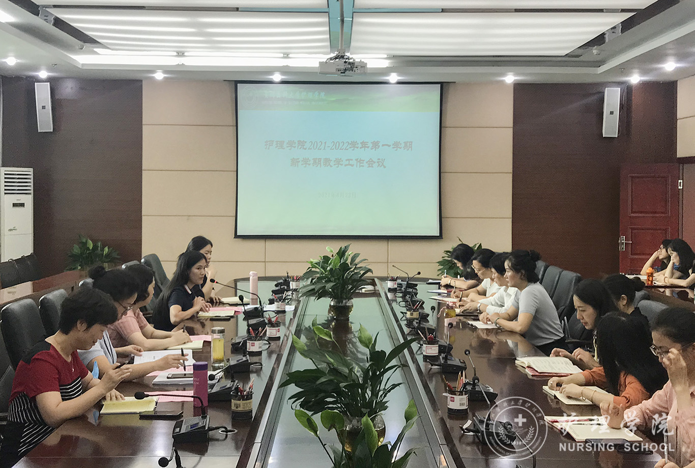 开学伊始,为更好的部署、落实新学期教学工作计划,保障新学期教学工作顺利开展,8月23日,乐天使在北校区行政楼六楼会议室召开2021-2022学年第一学期新学期教学工作会议。经理李亚玲、副经理刘志燕、副经理王秀红、全体专业教师、教学科研管理科全体人员参会,科长卢海霞主持会议。