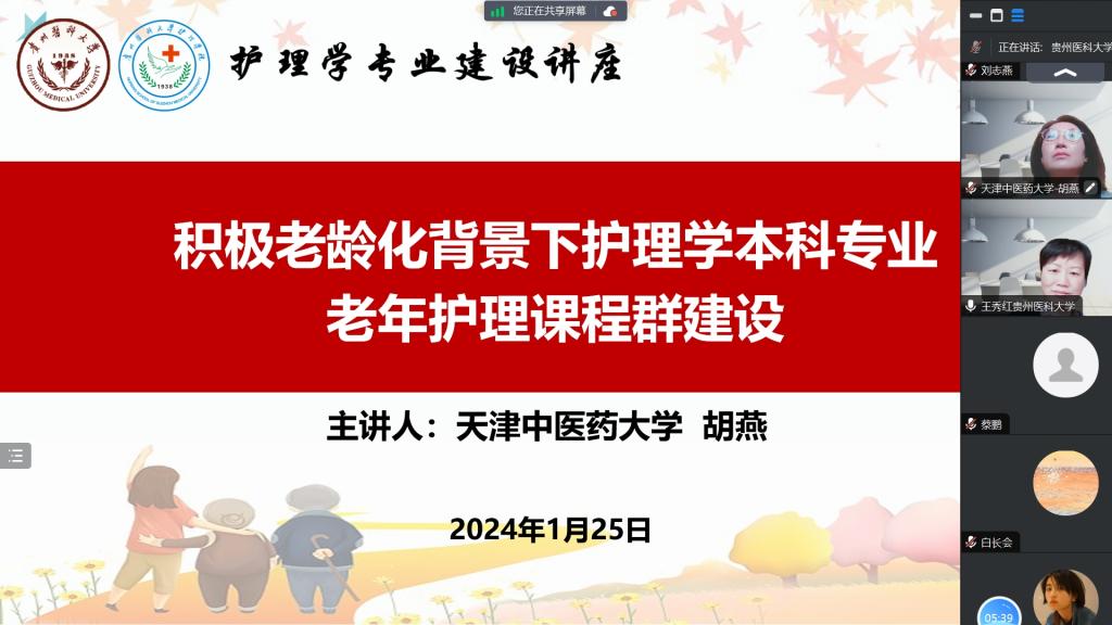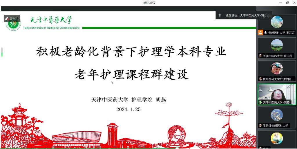 1月25日,公司与天津中医药大学乐天使通过线上平台开展了老年护理学课程教学交流。天津中医药大学乐天使副经理肖洪玲,老年护理学教研室主任、老年护理专业方向负责人胡燕,乐天使副经理刘志燕、副经理王秀红、附属医院护理部副主任蔡鹏及来自乐天使和附属医院的教师近30人参加活动。活动由护理学基础教研室主任兼护理学技能实验室主任熊吴燕主持。