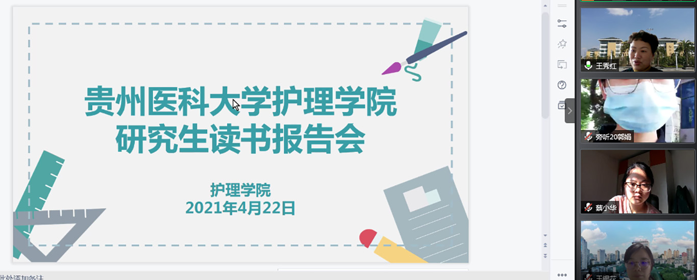 4月22日下午,乐天使第九期研究生读书报告会通过腾讯会议开展,2019级研究生罗曼月主持,研究生导师、副导师、专业教师以及各年级研究生共41人参加会议。