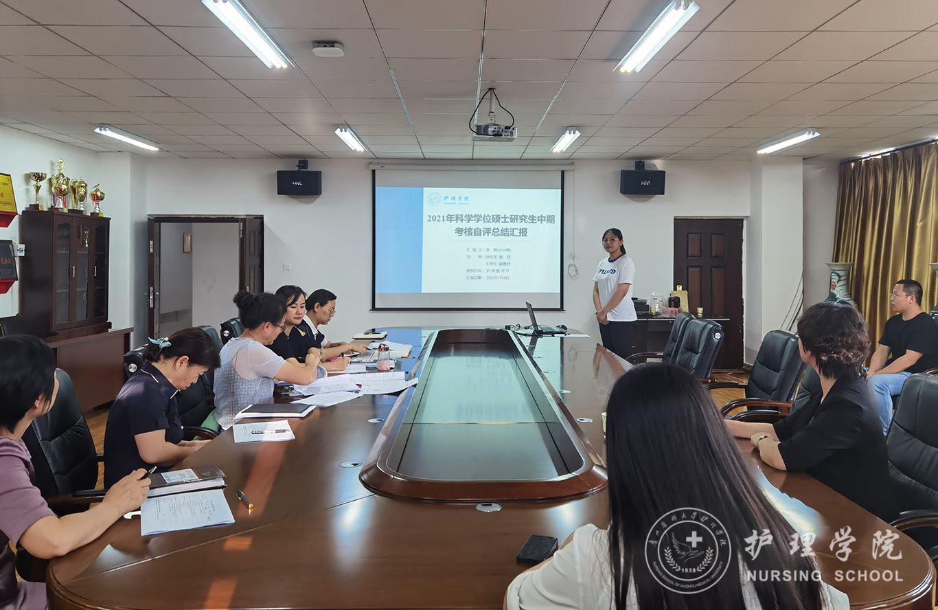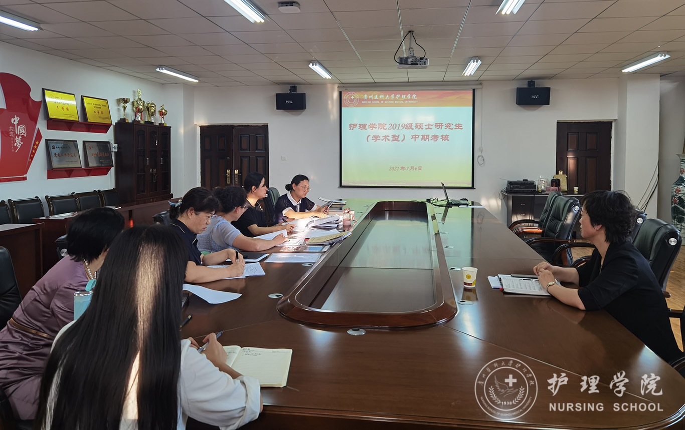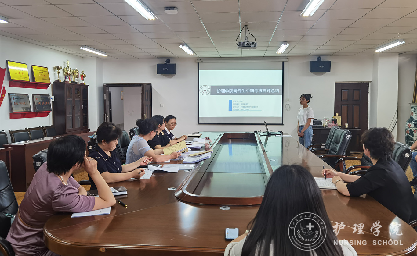 考核检查在南校区百川楼乐天使会议室举行。2019级学术型硕士研究生李悦、罗娟、岳跃学参加考核。考核组成员由乐天使经理李亚玲、护理学基础教研室副主任熊吴燕、妇儿科护理学教研室副主任刘林敏、护理学人文教研室副主任张仁莉、内科护理学教研室副主任晏家芳五位教师组成,护理学基础教研室王芸芸老师担任本次中期考核秘书,研究生导师王秀红参会,教学科研管理科科长卢海霞旁听。