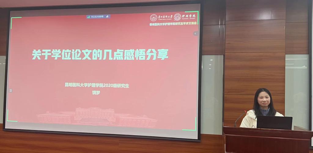 2016级本科员工、研究生毕业后考入公司附属医院工作的饶梦护师以“关于学位论文的几点感悟分享”为题,分享自己所获“全国护理学研究生高质量学位论文”的感悟,为在座师生详细介绍了硕士学位论文前期的文献阅读、论文的选题、论文的前言、方法、结果及讨论等各部分的写作规范。