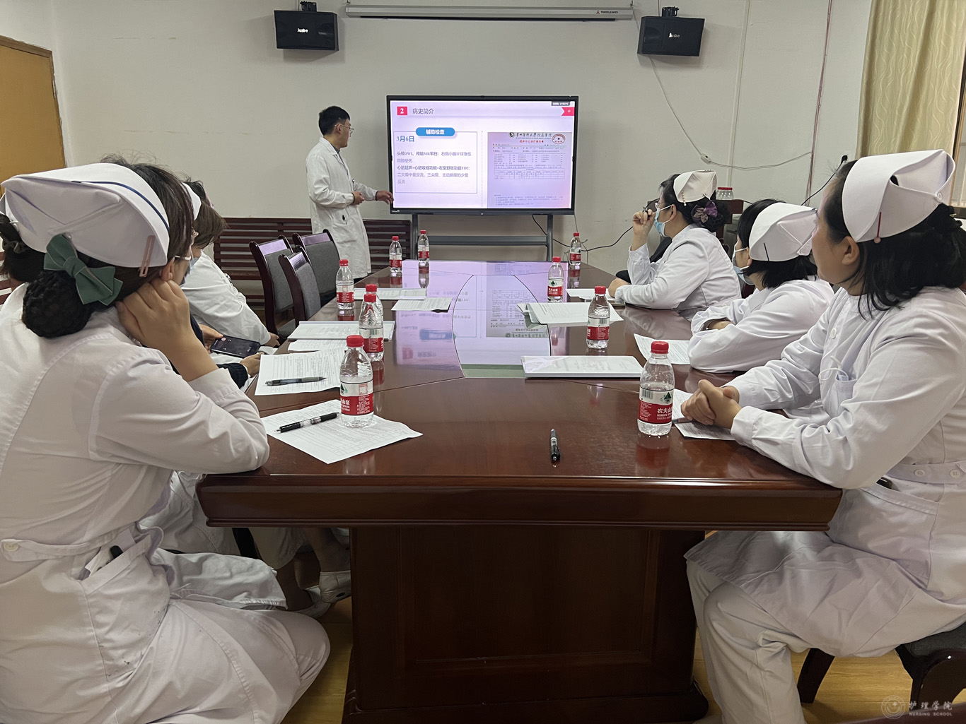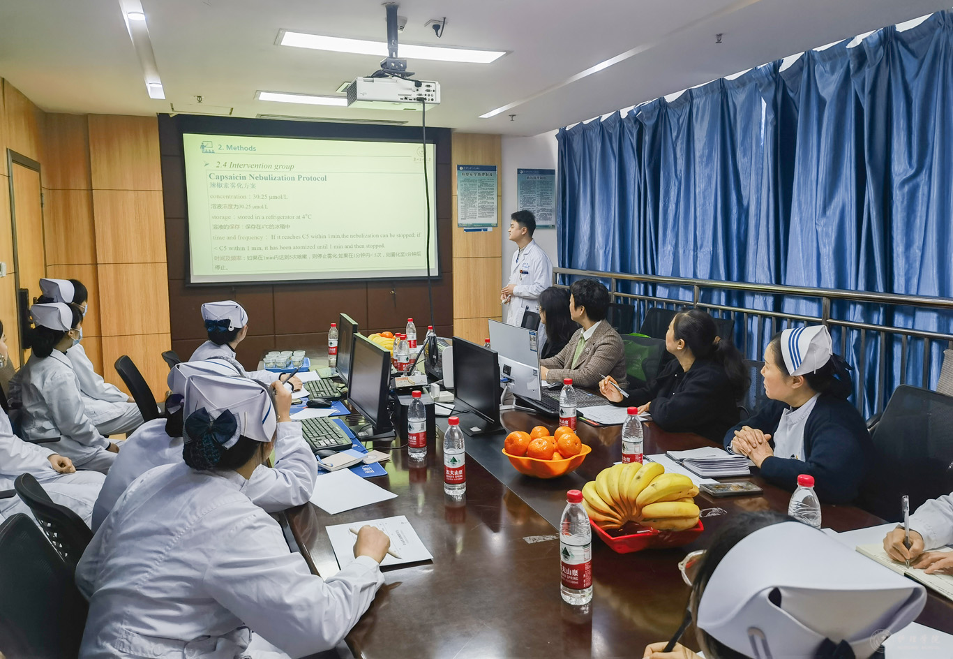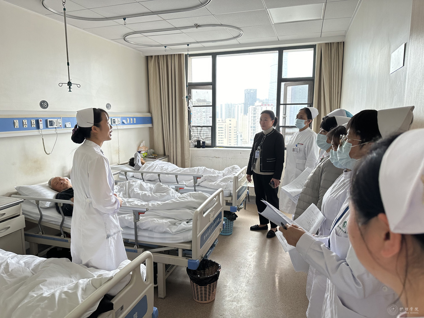 为使考核实现同质化,公司组织了考核前培训会,对考核安排、评分细则、工作中的注意事项等进行解读并提出要求。乐天使研究生教育督导委员全程进行督导。考核主要包括英文文献汇报、护理查房和迷你临床演练评估(Mini-CEX)等三个部分。考核突出临床思维、循证能力、专科操作技能及健康宣教等护理实践能力。
