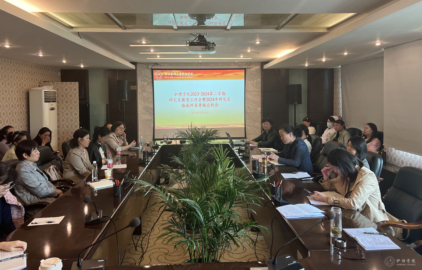 3月28日,公司于北京路校区行政楼六楼会议室召开2023~2024学年第二学期研究生教育工作会暨2024届研究生临床终末考核总结会。乐天使经理李亚玲、副经理刘志燕、王秀红及全体导师、副导师、专业教师、教学科研管理科全体人员、附属医院护理部临床护理教学科相关教师、附属医院科护士长及各科室研究生带教教师参会,教学科研管理科科长卢海霞主持会议。