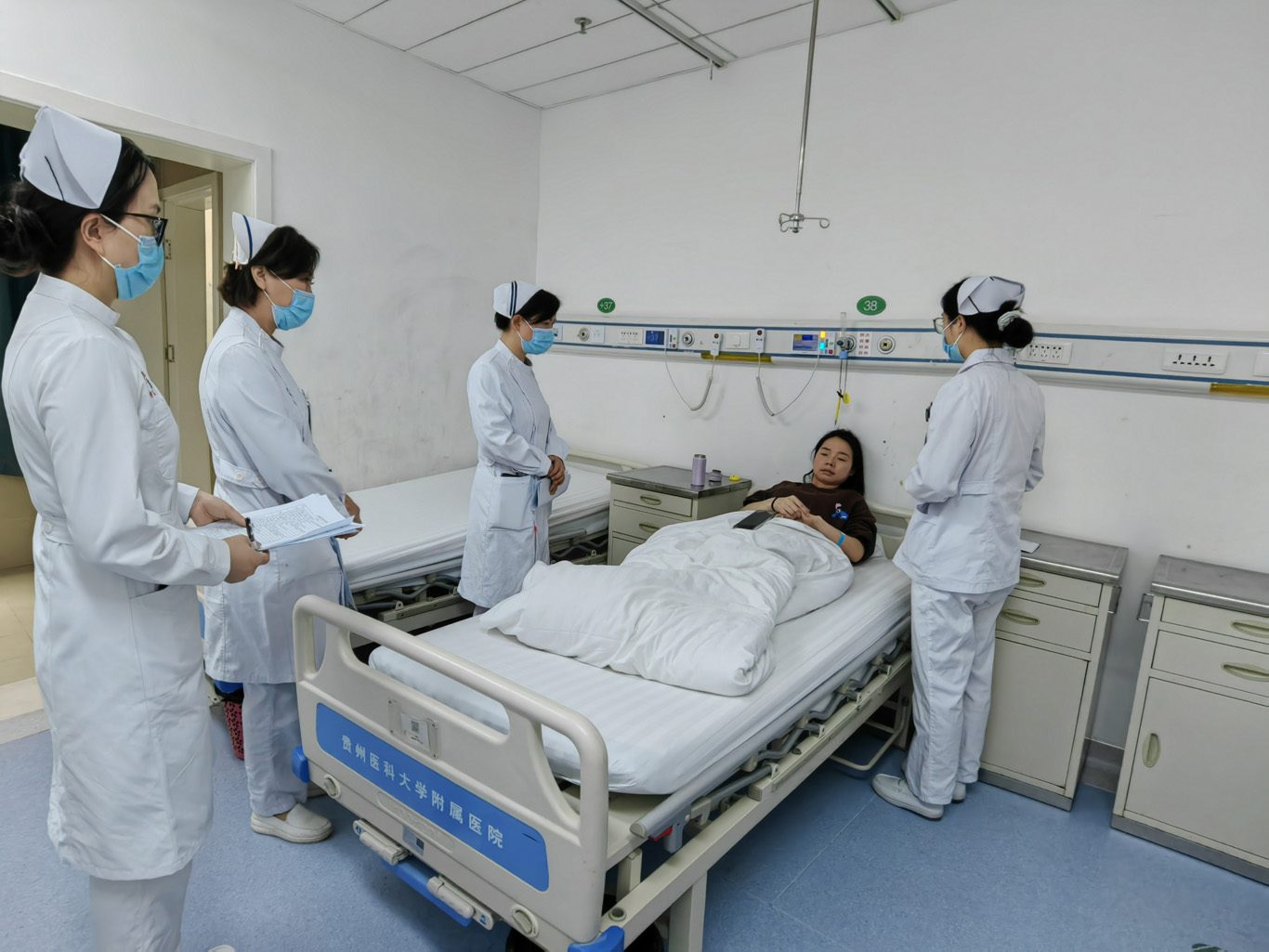 在前期筹备阶段,公司坚持医教协同理念,组建由临床与教学双线专家组成的考核工作小组,统筹部署并发布考核方案,全面落实各项准备工作。此次考核依托贵医附院各临床科室及临床技能中心有序展开,内容涵盖职业道德、护理文书书写质量、临床综合护理能力及专业外语等多维度能力评估,体现了临床实践与教育培养深度融合的导向。