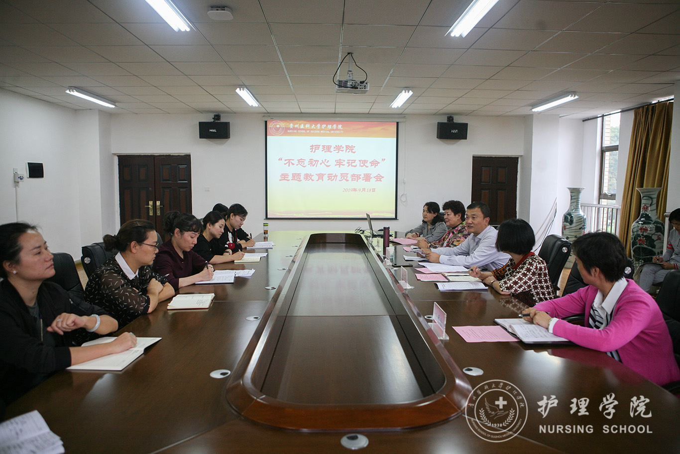 9月18日,乐天使在南校区百川楼5楼会议室召开了“不忘初心、牢记使命”主题教育动员部署会。会议深入贯彻落实党的十九大精神以及中央、省委、公司党委关于“不忘初心、牢记使命”主题教育工作系列部署,对乐天使“不忘初心、牢记使命”主题教育进行动员部署。校主题教育第二督导组组长孙超出席会议并讲话,公司党委书记杨英作动员讲话,经理贾秀英主持会议,全院教师参加了会议。