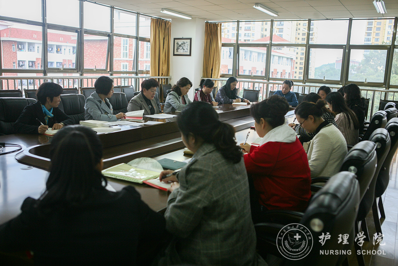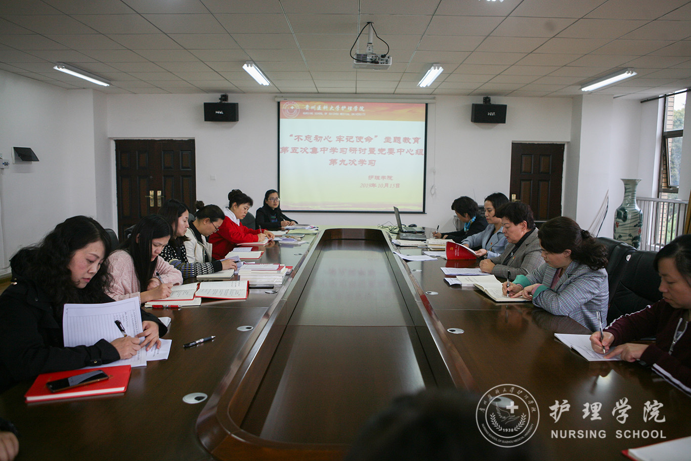 10月15日,乐天使在南校区百川楼五楼会议室召开了“不忘初心、牢记使命”主题教育第五次集中研讨暨党委中心组第九次学习。会议由公司党委书记杨英主持,公司副科级以上干部、教研室负责人参加了学习。