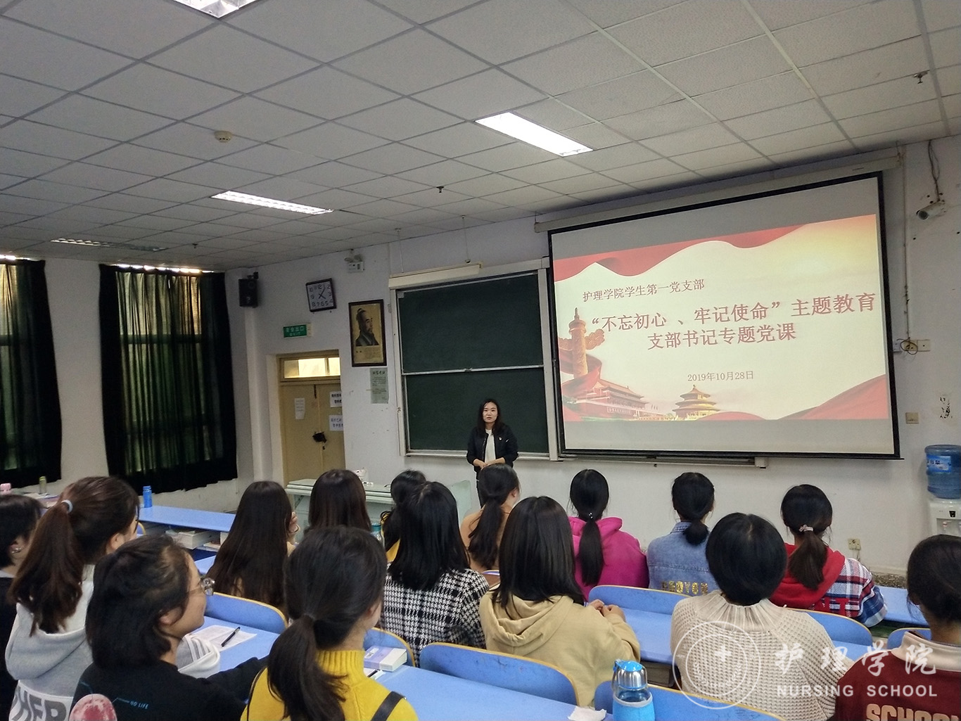 为扎实开展“不忘初心、牢记使命”主题教育,按照主题教育实施方案,公司员工第一党支部于10月28日开展了支部书记讲党课活动。员工第一党支部书记李颖主讲,全体在校生党员参加了现场学习,省外实习生党员通过“学习强国”APP在线参加了学习。