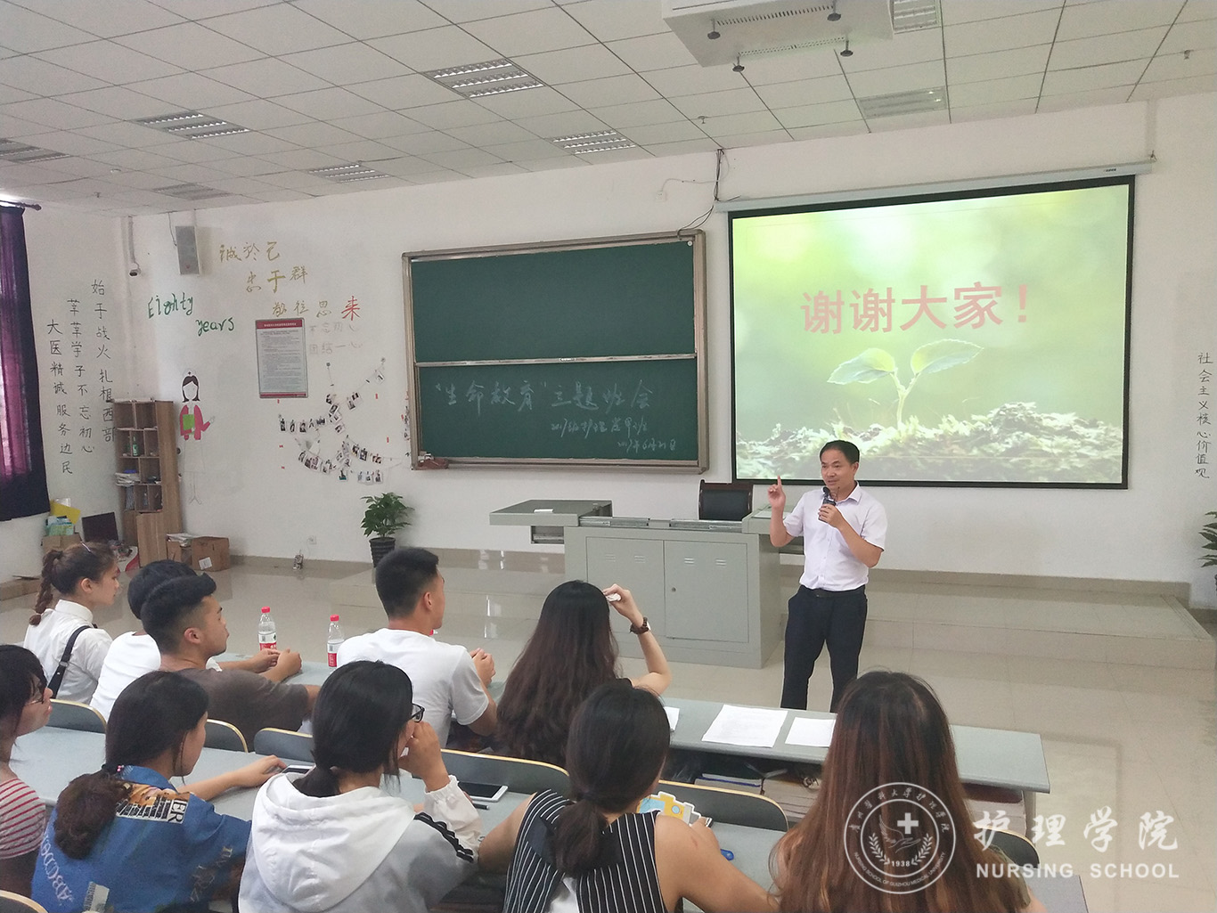 为增强老员工对生命教育知识的了解,引导老员工探索生命的积极意义,思考人生,以积极进取的态度面对学习与生活,珍惜生命,热爱生命。6月21日,护理学2017级在南校区召开了“生命教育”主题班会,主题班会分为两个班进行,公司党委书记杨英、乐天使学报编辑部主任刘淑雅、副主任吴昌学、辅导员马景瑶、班主任吴俊分别参加了各班活动。