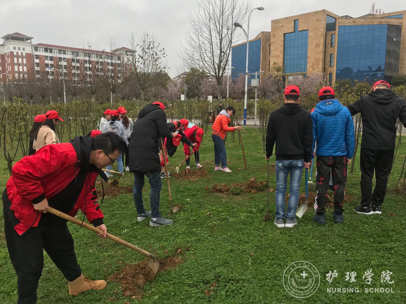 3月17日下午5时,乐天使组织部分青年志愿者在南校区开展了以“学习雷锋好榜样,共创美好校园”为主题的植树活动。