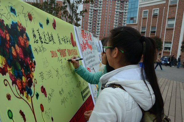 自3月24日起,为期四天的闲置物品征集工作便在乐天使及医药卫生管理员工会生活部成员的努力下如火如荼地进行着,征集现场门庭若市,来自不同专业、年级的同学或献衣物、或献书本、或献生活用品……纷纷奉献出自己的一片爱心。29日,义卖及文艺募捐活动在悯农堂前积极展开,过往的同学首先被乐天使文艺部成员酷炫的舞步,优美的舞姿以及当街便舞的勇气所折服,接着便被眼前琳琅满目的商品所吸引。在听闻本次活动的目的后,同学们纷纷伸出爱心之手,买下自己喜爱的物品,期间也不乏有同学把自己的零钱投入募捐箱,募捐后的签名更是他们爱心的最好见证,两天的义卖及募捐让整个校园暖意渐深。最后公司员工将会联合医药卫生管理公司、青年志愿者协会一起,将募捐和义卖所得的资金全部捐献给公司附属医院血液病中心,并会在这个充满着希望的三月,将征集的一些小物品送给附院的血液病儿童,为他们送去祝福与鼓励。至此,本次“慈爱献温暖,爱心献社会”二手闲置物品义卖及文艺募捐活动也便画上了完美的句号。
