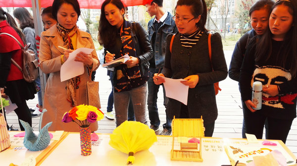本次参加义卖的作品是在乐天使手工大赛中进入复赛的作品,比赛初期通过院系员工干部初选及通过微博投票(共计4000余票)等方式,在参赛的三十余份作品中挑选出了十份作品进入复赛。作者们精致的手工艺品让老师们和现场同学对大家的动手能力及创新能力高度认可。 评选完毕后爱心义卖活动正式开始,过往的同学无一不被这些精巧细致的手工艺品所吸引,老师和同学们纷纷伸出爱心之手,买下了自己喜爱的作品,为希望工程献出了自己的一份爱心,现场也不乏同学把自己的零花钱投入募捐箱,整个义卖现场充满了浓浓的爱意。最后公司员工会将与校社团联合会、希望工程爱心社一起,将募筹和义卖所得500余元全部捐献给希望工程,在寒冬即将来临之际,给远方山区需要帮助的孩子们送去一点温暖。至此,本次“与爱同行”手工大赛也便画上了圆满的句号。