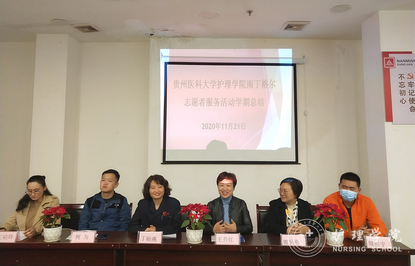 11月21日上午,乐天使暨中国南丁格尔志愿服务队乐天使分队“为老志愿服务”学期总结会议在贵阳市南明区油榨街道晚霞彩带老年人日间照料中心举行。贵钢医公司党总支书记丁晓燕,公司党委副书记何为,公司党委委员、副经理、中国南丁格尔志愿护理服务队乐天使分队队长王秀红,中心经理周熙宇,护理学基础教研室副主任熊吴燕,乐天使分团委副书记王晓玲,2018级护理学、助产学同学代表参加了此次会议,会议由王晓玲主持。