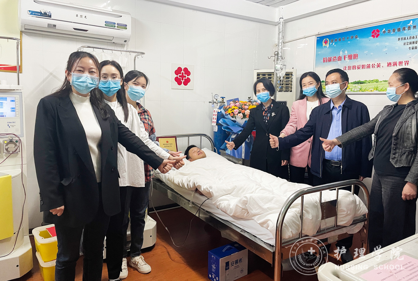 点燃生命火种,为爱勇敢奉献。4月11日-12日,2019级助产学专业的王艳、冉康两位同学在乐天使附属医院成功完成了造血干细胞的捐献。乐天使校团委书记肖绚、副书记胡洪瑞,公司党委书记杨英、公司党委副书记何为,省红十字会造血干细胞管理中心副主任杨梅、宣传服务部副部长王雄等一行到医院看望并慰问了两位同学。