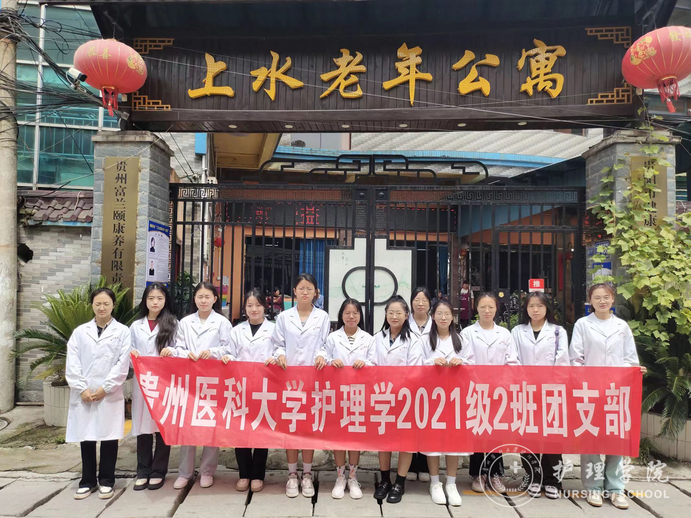 为弘扬尊老、敬老、爱老、助老的中华传统美德,6月21日,护理学2021级1班、2班、3班团支部团员代表前往贵阳市上水社区上水老年公寓开展了“关怀护理,敬老相伴”志愿服务活动,此次活动由各班团支书组织。