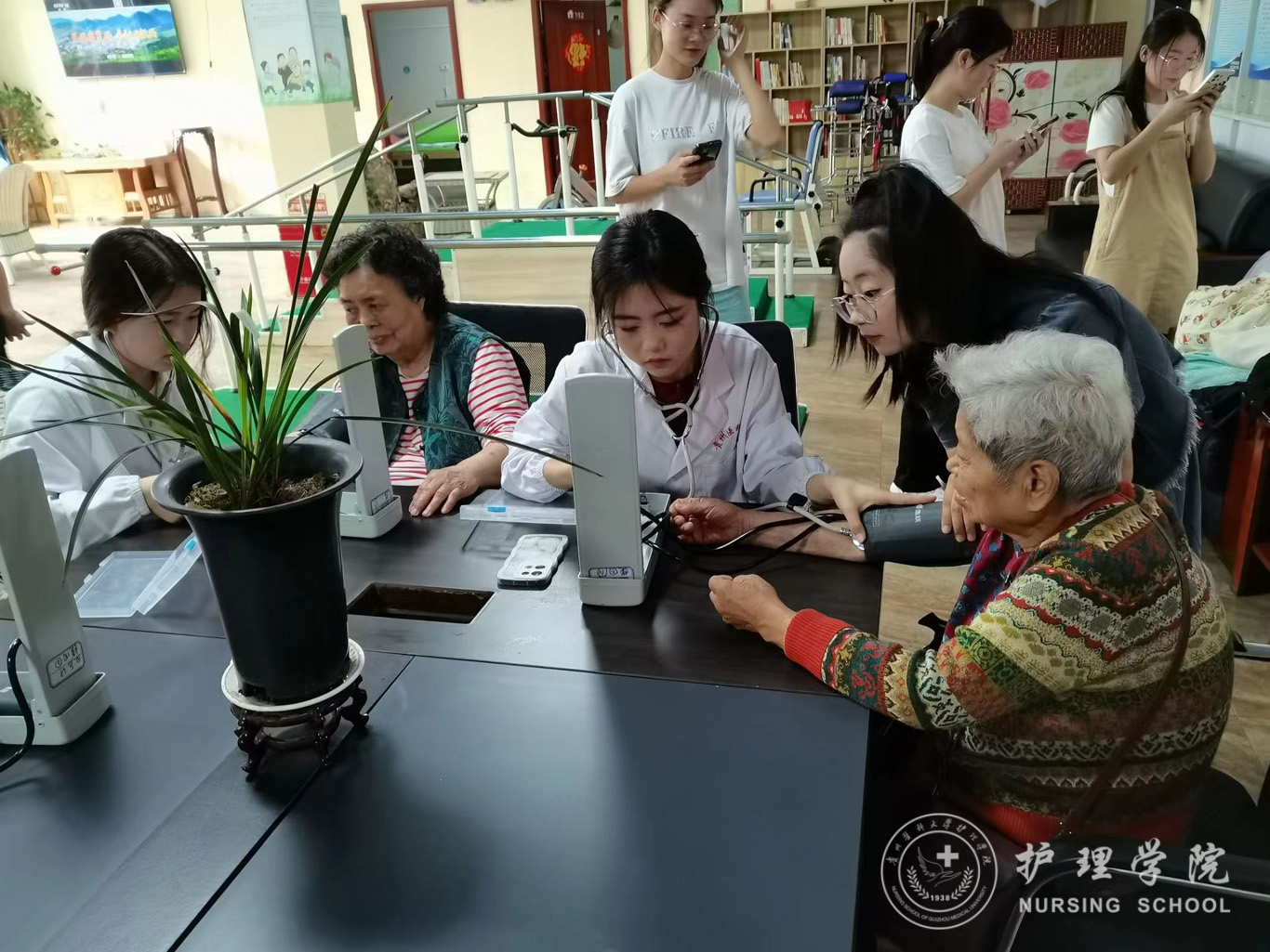 活动开始前,同学们参观了养老院的内部环境及周边设施,工作人员为同学们介绍了养老院的“医养结合”项目情况,让同学们对现代养老模式有了进一步的了解和认识。活动过程中,同学们组成了五个小分队分别在敬老院开展了卫生大扫除、测量血压、健康宣教及CPR和海姆利克急救法培训,对老人们关心的健康问题进行了耐心解答,提高了老人们的健康防护意识。同学们的细心服务得到了老人们的一致肯定。