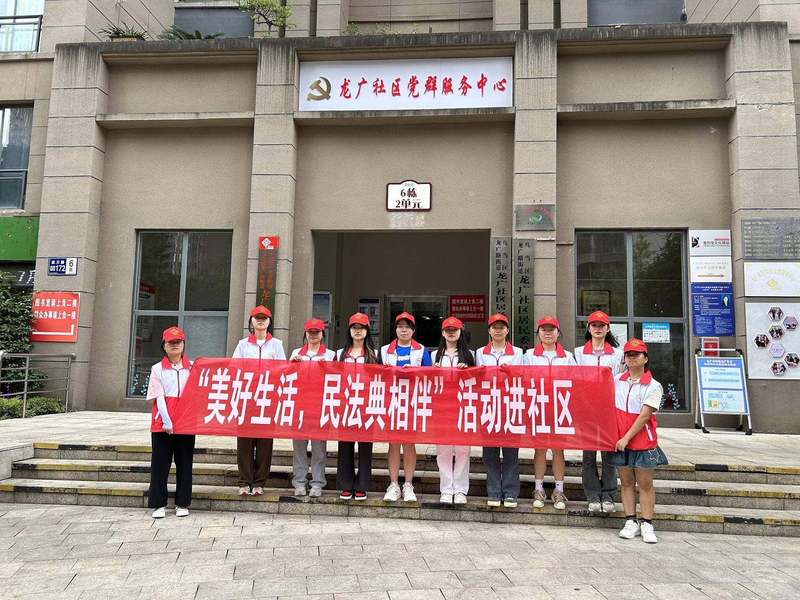 志愿服务队队员在社区居民区及所辖幼儿园为社区居民提供了健康义诊、急救培训及医学知识宣教服务,同时还为他们进行了普法宣传,进一步推动法治教育进社区。活动过程中,队员们为前来参加的居民们测血压,开展一系列健康体检服务,向居民们介绍常见疾病的预防和治疗方法,讲解良好的生活习惯和健康饮食的重要性,帮助当地群众更好地提升自我健康素养、健康保健意识和健康水平。队员们还针对幼儿园教师开展了急救技能培训,向园里的小朋友们教授了基本的卫生知识及简单的意外自救办法,用心呵护儿童成长,用科学的急救技能为儿童的健康安全保驾护航。
