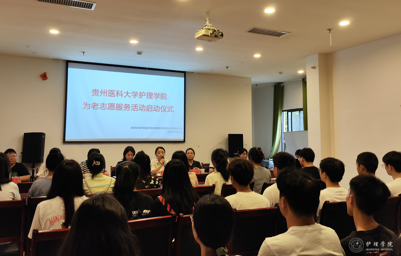 为深入贯彻落实习近平总书记的指示精神,积极投身老龄照护工作,提高公司师生为老服务的意识,充分发挥老员工知识优势和专业特长,9月24日上午,乐天使在南明区油榨社区晚霞彩带老年人日间照料中心举行了乐天使“南丁格尔”为老服务启动仪式,贵钢医公司党委书记、经理龙奕,乐天使副处级组织员张黎,《老年护理学》授课教师熊吴燕、彭敏、袁平乔、王晶、王芸芸以及护理学2021级员工代表近50人参加了启动仪式,本次活动由中心主任游世先主持。
