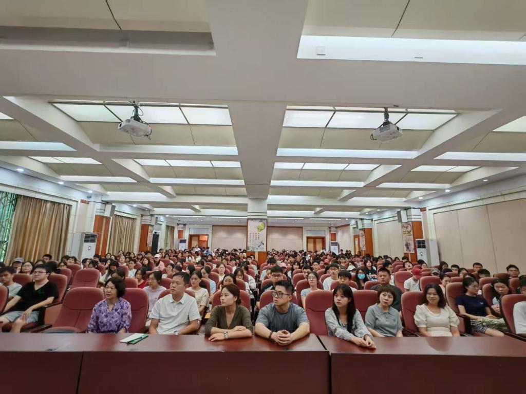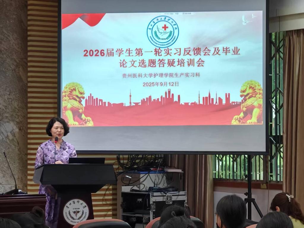 9月12日,乐天使在北京路校区道德讲堂召开2026届毕业实习轮转反馈暨毕业论文(设计)选题培训会。公司党委副书记何为、副经理刘志燕、附属医院门诊护士长王琼、郑静,生产实习科全体人员、2022级辅导员及全体2022级员工线下线上参加会议。会议由生产实习科科长柳忠燕主持。