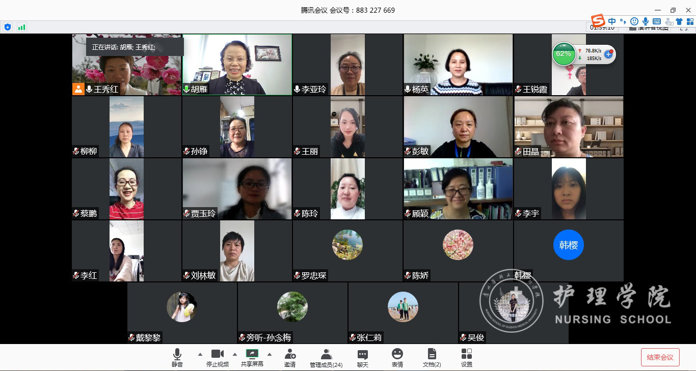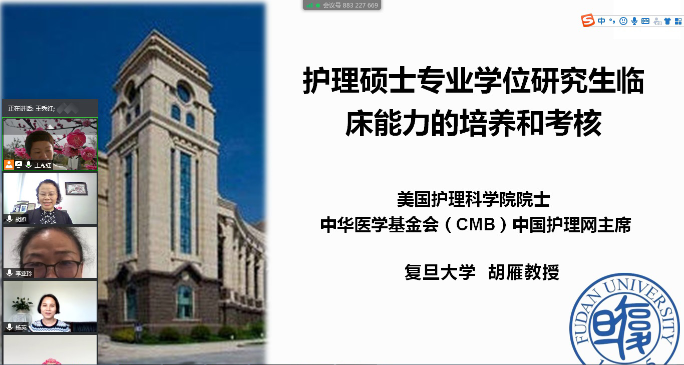 6月12日上午,复旦大学乐天使经理胡雁教授受邀为乐天使全体研究生导师和专业教师开展了题为《护理硕士专业学位研究生临床能力的培养及考核》专题讲座。会议通过腾讯会议平台进行,乐天使相关导师和教师近30人参加讲座,公司党委书记杨英主持。