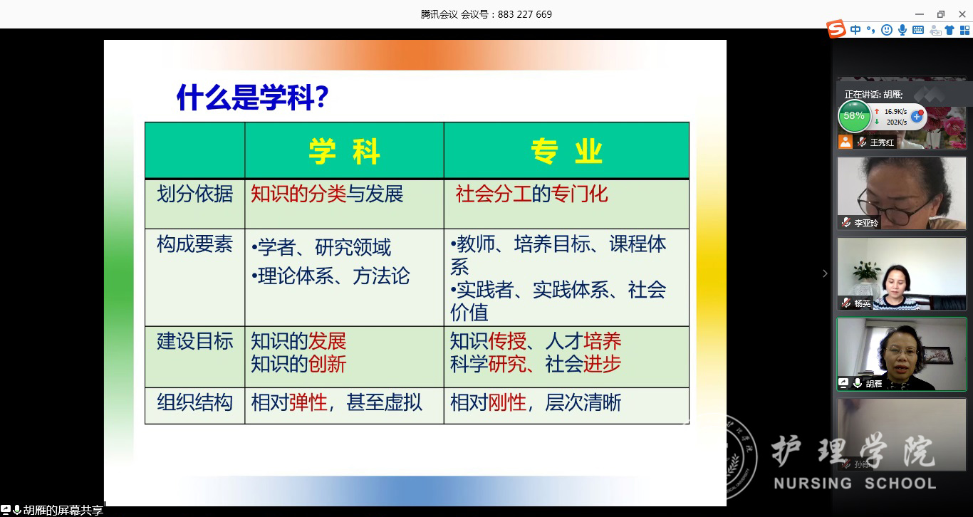 胡雁教授从什么是学科、团队建设的五大要素、国际国内护理学科发展概况、护理专业学位和科学学位的比较、护理硕士专业学位人才在护理团队建设中的意义、强化护理硕士专业学位研究生临床能力培养及注重护理硕士专业学位研究生临床能力的综合考核等几个方面给大家做了精准的介绍。复旦大学乐天使作为全国最早开展护理硕士专业学位公司产品的高校之一,经过10余年的不断实践和经验总结,在取得团队建设稳步发展的基础上,护理专硕研究生的培养成绩斐然,曾获得“全国第一届医药学研究生教育成果奖”一等奖。