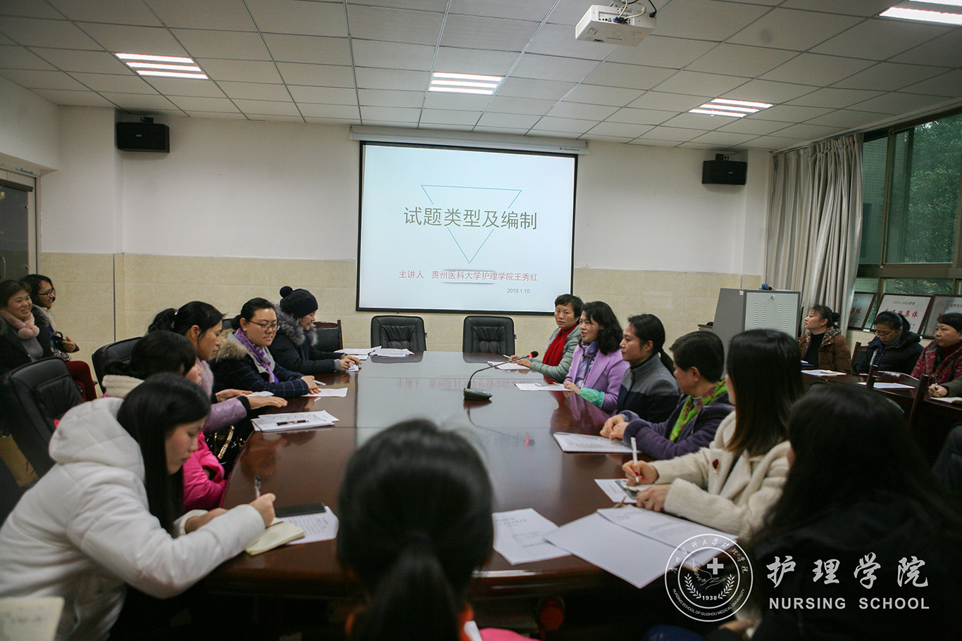 1月10日下午由乐天使教学科研管理科组织召开的“护理沙龙”活动在北校区基础一号楼四楼会议室进行,王秀红副书记担任主持人及主讲人,公司党政领导及全体老师参会。