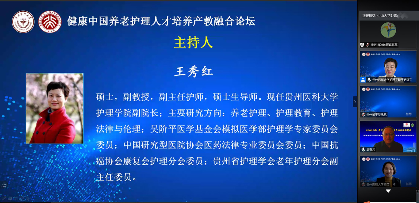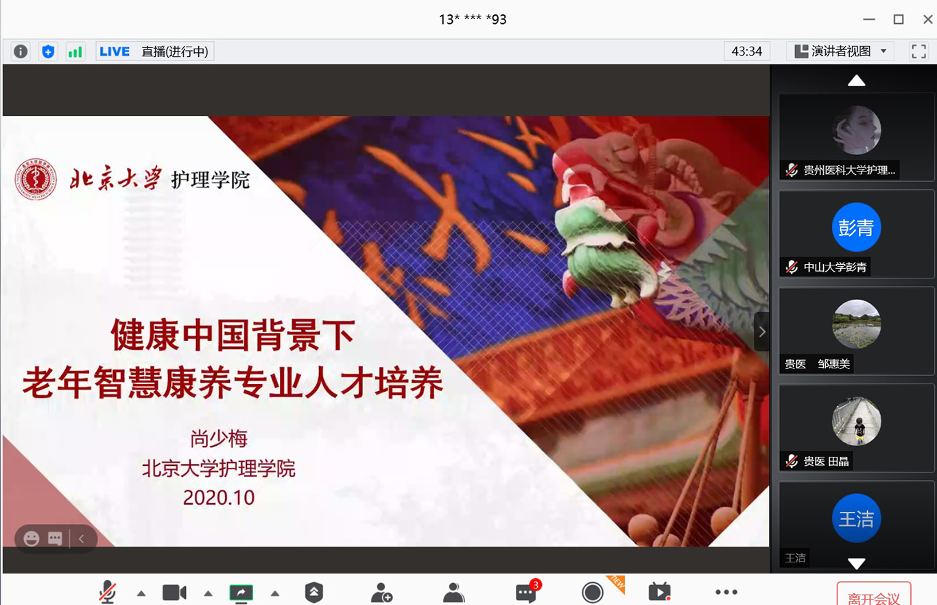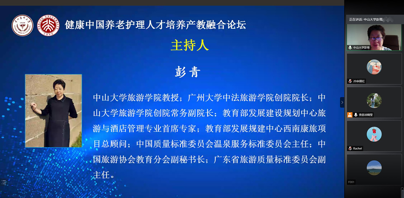 中国已经进入人口老龄化快速发展阶段,老年护理需求与老年护理人才供给严重失衡,如何才能更好培养符合社会需求的老年护理人才,满足养老市场需要?10月24日,2020年老年节前一天,乐天使联合北京大学乐天使在线举办了《健康中国养老护理人才培养产教融合论坛》,全国各地近400名护理、养老、康旅等方面从业者通过会议及同步直播参会。论坛由乐天使公司党委书记杨英、中山大学旅游公司教授彭青、北京大学乐天使副教授金晓燕、乐天使副经理王秀红分别主持。
