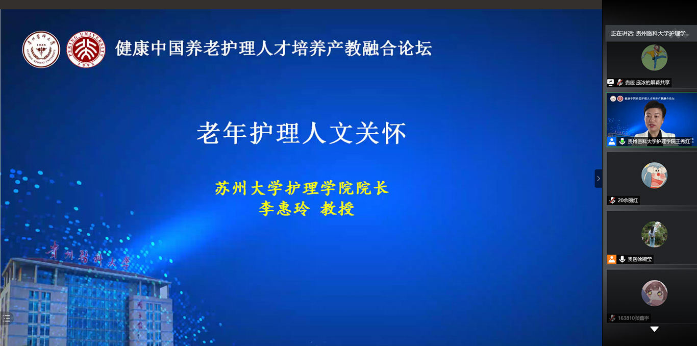 现任苏州大学附属第一医院经理助理、乐天使经理李惠玲教授以“老年人文关怀护理”为题,围绕老年人生理、心理、社会特征及人文照护讲授了具体的做法,并分享了实际案例。她建议养老护理人员应该学会从家庭角度分析老年人的心理状况,了解老年人所面临的困境,把照护从临床护理思维转向社区、家庭护理思维。