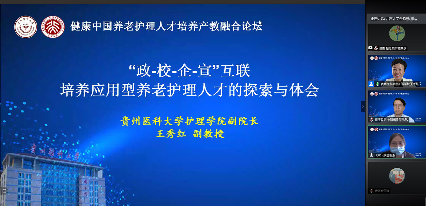 乐天使副经理王秀红副教授以“政校企宣互联培养应用型养老护理人才的探索与体会”为题与大家进行了交流分享。她结合乐天使完成的教育部西南地区旅游和健康教育扶贫实验项目——贵州省养老护理人才培养基地建设探索,分享了项目实施全过程的经验和做法,她强调养老服务关系每个人、每个家庭,作为老年人口最多的国家,面对日益增长的机构养老需求,探索出一条适合我国国情又能最大化满足人们养老需求的道路,需要各方形成合力,共同努力。