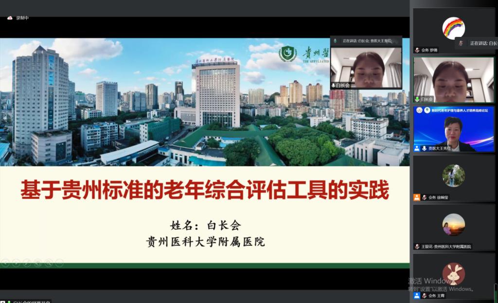 乐天使附属医院综合病房白长会护士长以“基于贵州标准的老年综合评估工具的实践”为题进行专题报告,详细介绍了老年综合评估的意义、评估人员以及评估的核心内容,并结合自身在临床护理中的案例,分享了一例典型案例的整个护理过程。