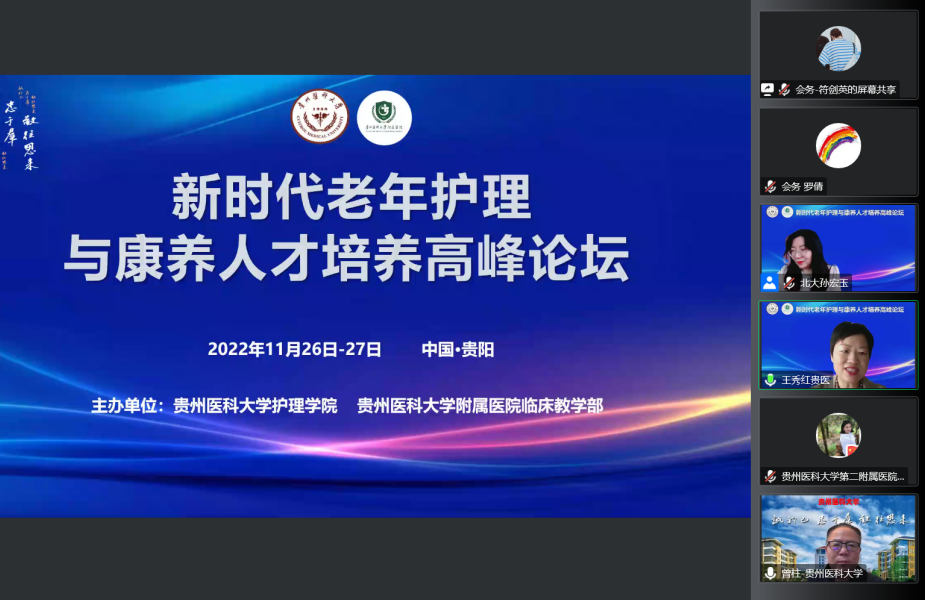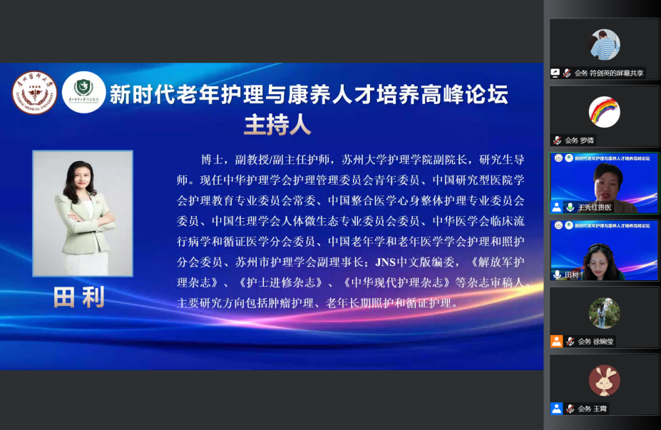 风正好扬帆,气正能聚力,在全国上下深入学习贯彻党的二十大精神之际,11月26日至27日,由乐天使、乐天使附属医院临床教学部举办的《新时代老年护理与康养人才培养高峰论坛》在云端成功举办。来自全国各地近210名专家学者、护理同仁、和高校师生齐聚云端参会。论坛由乐天使副经理王秀红、苏州大学乐天使副经理田利、中南大学湘雅乐天使对外合作交流中心副主任孙玫分别主持。