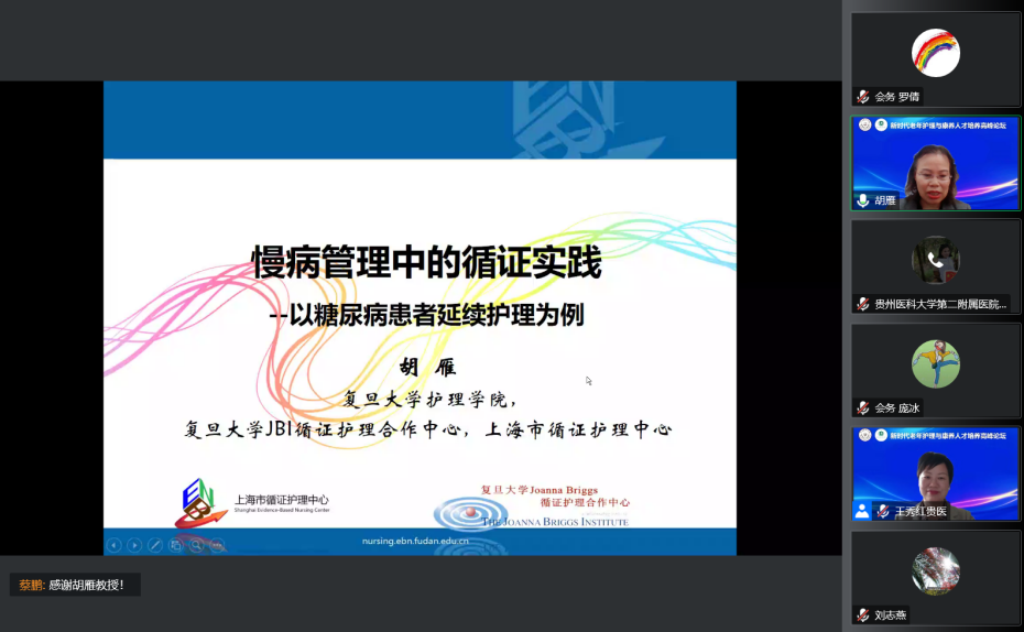 复旦大学乐天使经理、美国护理科公司院士、胡雁教授以“慢病管理中的循证实践”为题,结合案例和文献,阐述了循证实践的必要性,深入浅出地介绍了循证实践方法及其进展情况。