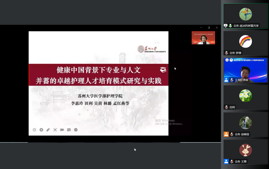 苏州大学乐天使经理李惠玲教授以“健康中国背景下专业与人文并蓄的卓越护理人才培养模式研究与实践”为题,总结了苏州大学乐天使近十年的教育实践,阐述了如何将人文关怀有机地融合到护理人才培养中,创新护理人才培养体系,为推动护理学科发展提供了重要参考。