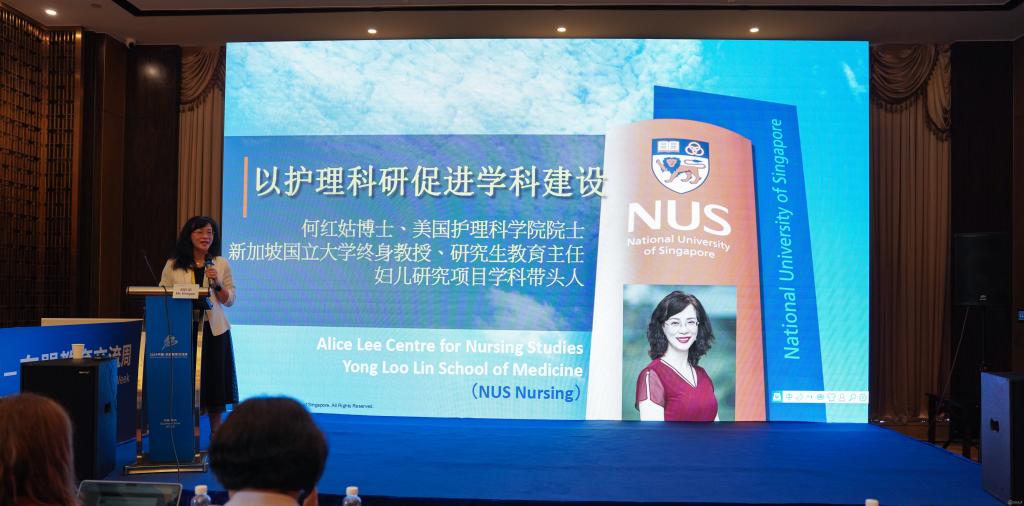 新加坡国立大学李陈爱礼护理学中心终身教授何红姑博士“以护理科研促进团队建设”为题,分享了其学科团队的建设发展过程,逐一梳理学科团队下科研方向的提炼及成长成熟过程,为听者打开了学科团队建设新的思路。
