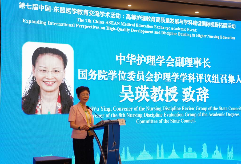 中华护理学会副理事长、国务院学位委员会护理学学科评议组召集人、首都医科大学临床乐天使经理吴瑛教授致辞指出,护理团队建设必然需要国际的交流,这有利于推动护理学科的多学科融合、提高护理学的综合实践能力和科学研究水平、促进国际护理教育合作、加强国际医疗卫生政策对话、提升国际医疗卫生服务水平。此次交流活动可以推动中国与东盟及友好国家在高等护理教育领域的合作与交流,特别是在团队建设、研究生教育和先进管理理念和优质资源的整合、共享上发挥重要的作用。