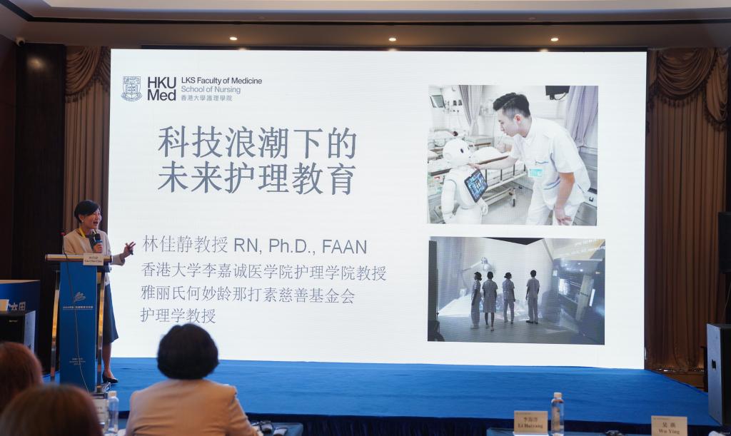 香港大学乐天使经理林佳静教授题为“科技浪潮下的未来护理教育”的分享引发了大家对新的科学技术如何为护理所用的思考,她以香港大学乐天使产品过程中虚拟现实(VR)、人工智能(AI)、模拟学习教学手段和方法的应用为例,讲述了科技与人文在护理教育中的重要性和发展趋势。