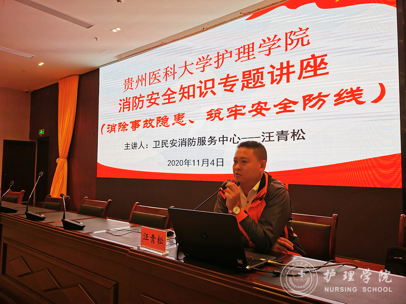 为进一步提高全体师生的消防意识和应急反应能力, 11月4日,乐天使在南校区道德讲堂开展了“消防安全宣传月”主题党日活动。本次活动特别邀请了贵阳卫民安消防知识宣传中心宣教部汪青松主任为乐天使全体教职工和员工做了《消防安全知识专题——消除事故隐患,筑牢安全防线》讲座。活动由教职工党支部张仁莉同志主持。