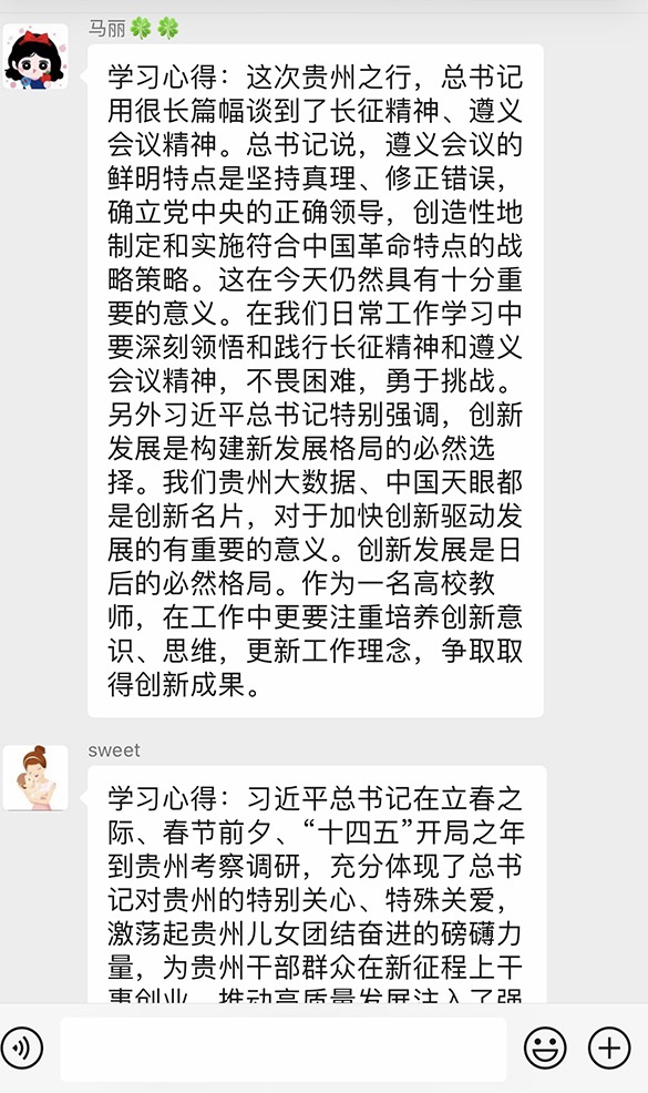 为深入学习贯彻习近平总书记视察贵州重要讲话精神,2月10日,乐天使教职工党支部以线上会议的方式组织开展了习近平总书记视察贵州重要讲话精神专题学习暨主题党日活动。本次活动由教职工党支部书记张仁莉同志主持,公司全体教师党员参加。